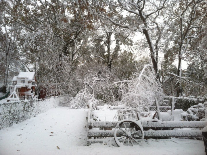 I spent the morning swatting snow off tree branches with my broom. It was quite a sight.